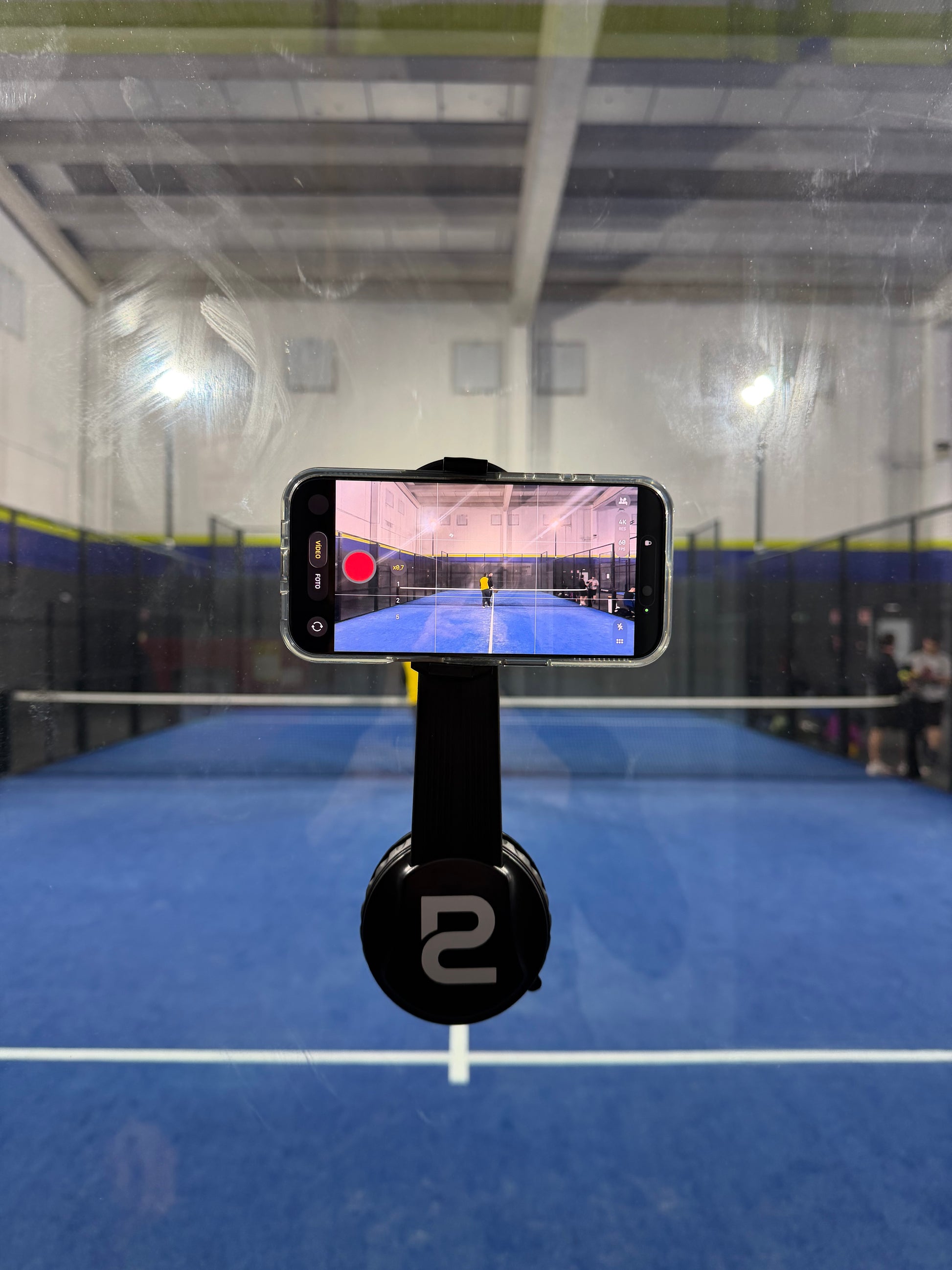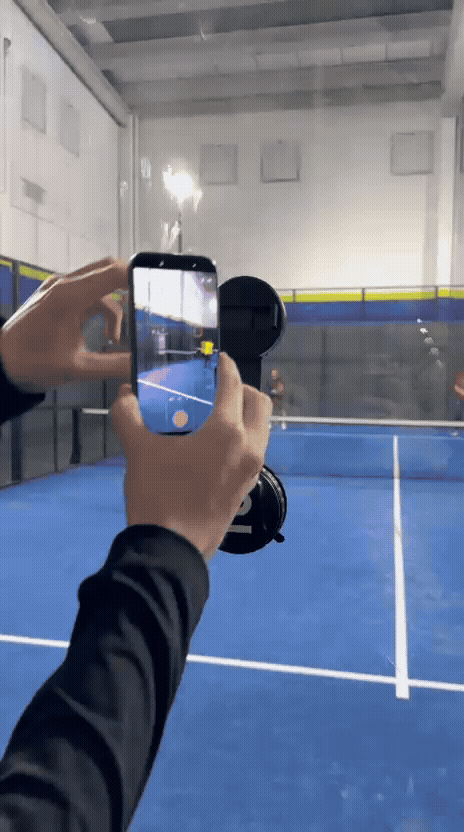 PalaCoach Glass Clip™ se instala directamente sobre el cristal de la pista en pocos segundos, sin tornillos, trípodes ni configuraciones complejas.